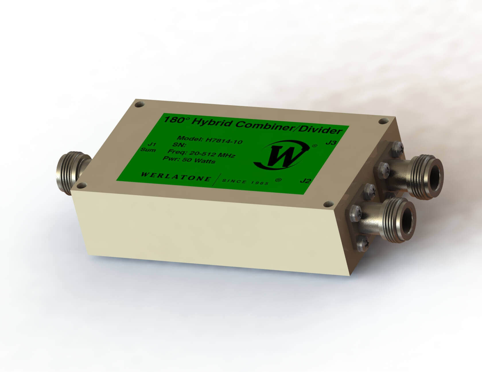 180° Hybrid Combiners – H7814 180° RF Hybrid Divider covers the full 20-512 MHz band rated at 50 W CW. 180° Hybrid Combiners – H7814 supports wideband amplifier applications. The unit operates with less than 0.8 dB of Insertion Loss and better than 25 dB Isolation. The unit measures 4.0 x 2.2 x 1.1″ with a variety of connectors. Above all, Werlatone 180° Hybrid Combiners provide exceptional bandwidth capability while operating with low loss and high port-to-port isolation.