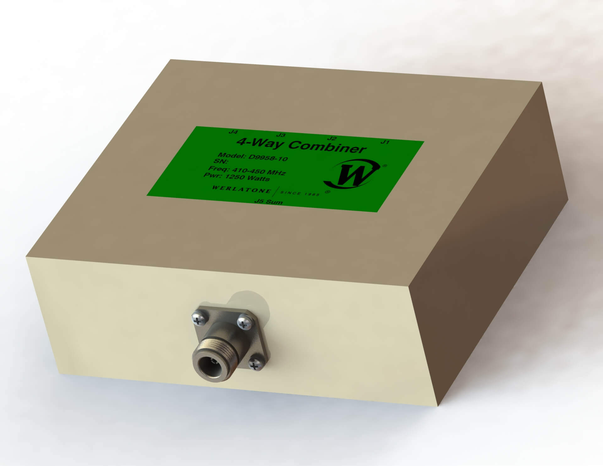 RF Combiner – Model D4047 – 4-Way In-Phase Connectorized Combiner covering the full 420-450 MHz band rated at 2000 W CW. RF Combiner- Model D4047 is designed for military and commercial applications and operates with less than 0.3 dB of Insertion Loss. The D4047 operates with better than 20 dB Isolation. Choose your specific connector configurations from a list of options. Additional connector configurations for our RF Combiners and RF Dividers, Non-Coherent Combiners and N-Way Combiners are available upon request.