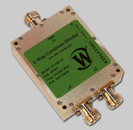 RF Combiner – Model D7105 – 2-Way In-Phase Connectorized Combiner covers the full 20-500 MHz band rated at 500 W CW. RF Combiner- Model D7105 supports military and commercial applications and operates with less than 0.35 dB of Insertion Loss. The D7105 operates with better than 20 dB Isolation. Choose your specific connector configurations from a list of options. Additional connector configurations for our RF Combiners and RF Dividers, Non-Coherent Combiners and N-Way Combiners are available upon request. Above all, Werlatone RF Combiners handle the most stringent operating conditions.