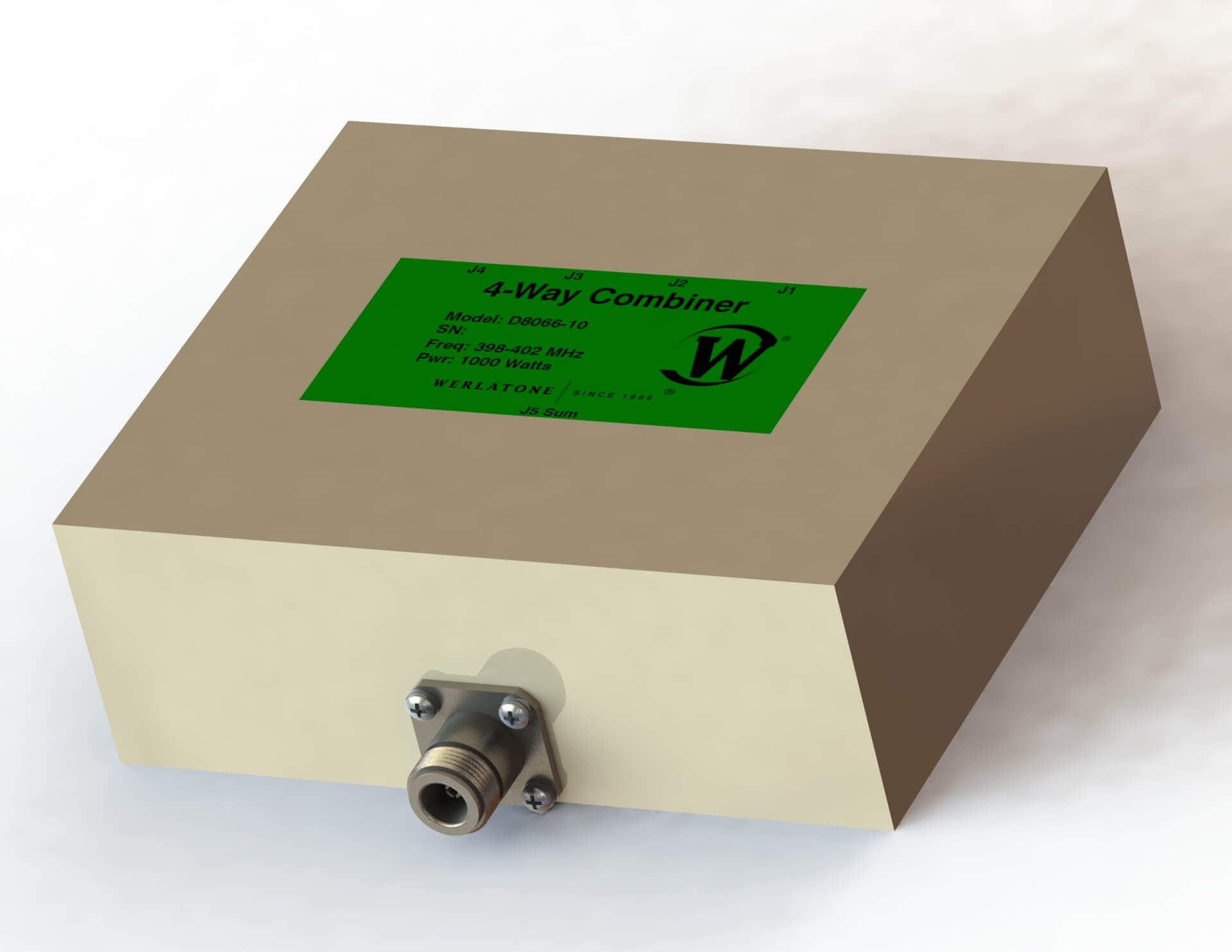RF Combiner – Model D8066 – 4-Way In-Phase Connectorized Combiner covers the full 398-402 MHz band rated at 1000 W CW. RF Combiner- Model D8066 supports military and commercial applications and operates with less than 0.4 dB of Insertion Loss. The D8066 operates with better than 20 dB Isolation. Choose your specific connector configurations from a list of options. Additional connector configurations for our RF Combiners and RF Dividers, Non-Coherent Combiners and N-Way Combiners are available upon request. Above all, Werlatone RF Combiners handle the most stringent operating conditions.