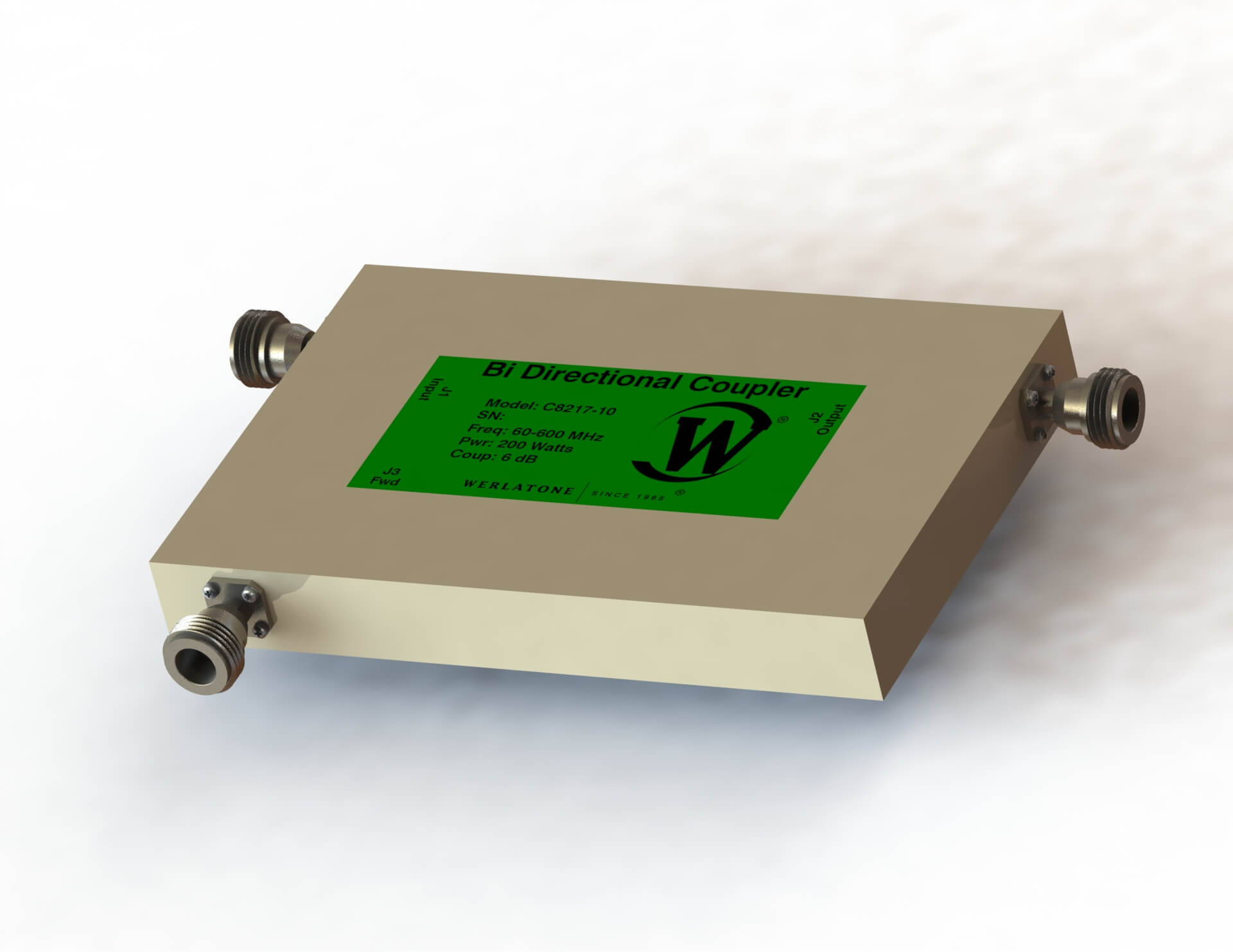 RF Coupler – Model C8217 – Uni-Directional Coupler is a High Power design. The unit operates with 6 dB Coupling, covers the full 60-600 MHz band rated at 200 W CW. RF Coupler – Model C8217 supports military and commercial applications and operates with less than 0.35 dB of Insertion Loss and better than ± 1.0 dB of Coupling Flatness. The unit is available with a variety of mainline and coupled port connectors. Werlatone Directional Couplers are broadband Dual, Uni, and Bi-Directional. Above all, our high power designs tolerate the most harsh operating conditions associated with military and EMC testing environments.